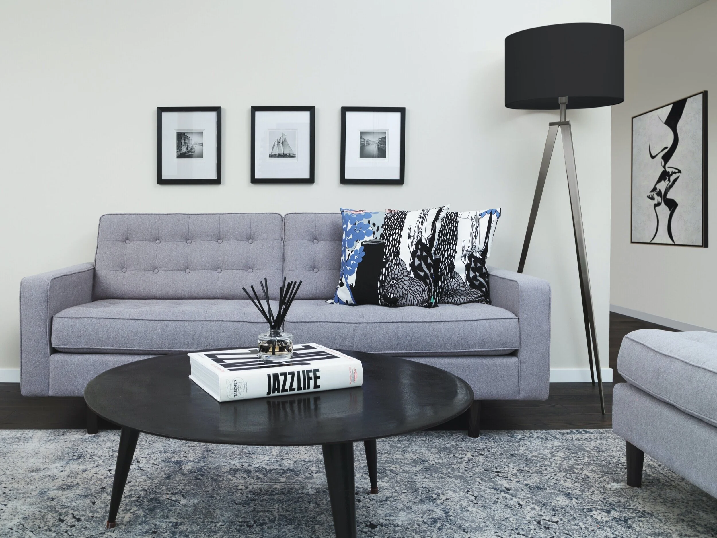 A colour scheme of grey, black and white with hints of blue was decided for the living area. An Art Deco inspired blue velvet lounge chair added a bold statement in the Mid-Century Modern concept and brought alive with signature Marrimekko pillows. Grey and walnut themes in the dining area gave it a distinct character of its own with art and accessories curated with a tribal theme. Modern art in canvas and photographic prints enhanced other areas of the open space plan.